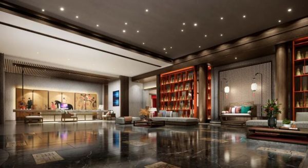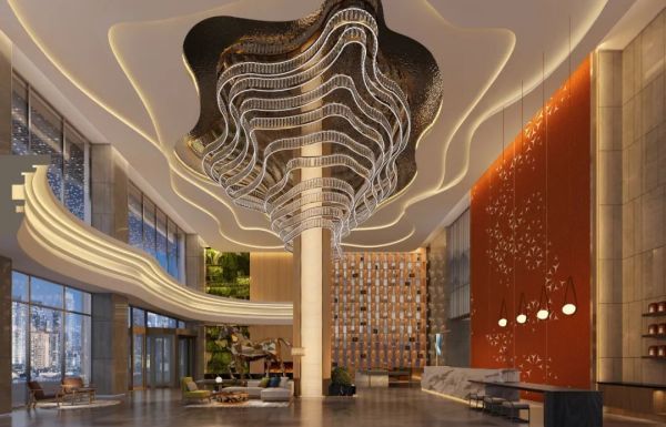大堂内要有适宜的光线,使员工和客人在良好的光线下活动,由于一天中室外光对于大堂的影响不同,所以有条件的酒店可考虑使用电脑调光系统,采用不同的灯光场景模式,使每一时段的光照都保持更佳效果,使客人始终感到舒适。
