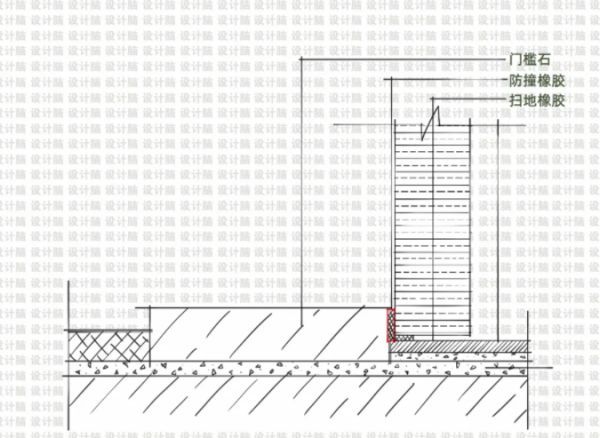 如果门槛石高于门扇,可将门槛石拉出15mm左右,并在门扇或门槛石上安装防撞橡胶,值得注意的是,此方法不够美观,不建议设计时使门槛石高于门扇。
