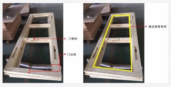 骨架:为了保证强度,如果门扇是木骨架,则需保证边框骨架≥100mm、横档骨架≥50mm,如果门扇骨架为钢管,则建议钢管规格≥30mm*20mm,同时应注意钢管的厚度。