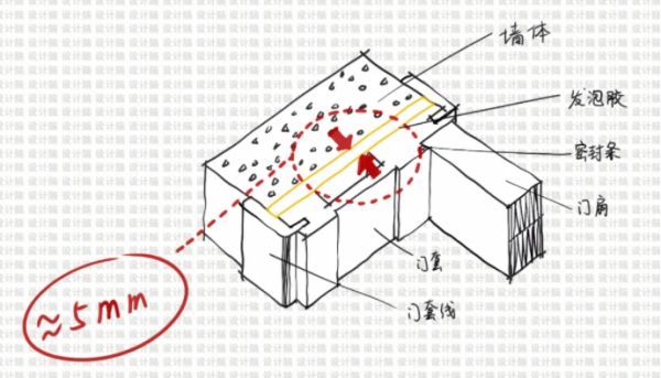 门套与墙体的缝隙应控制在5mm之内,若缝隙过大,可采用发泡胶封堵缝隙。