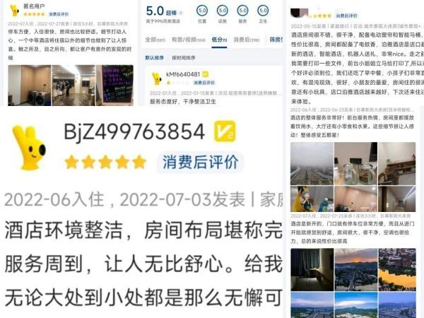 美团、携程消费者好评截图