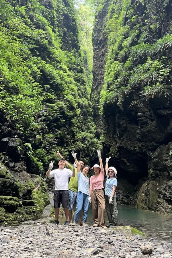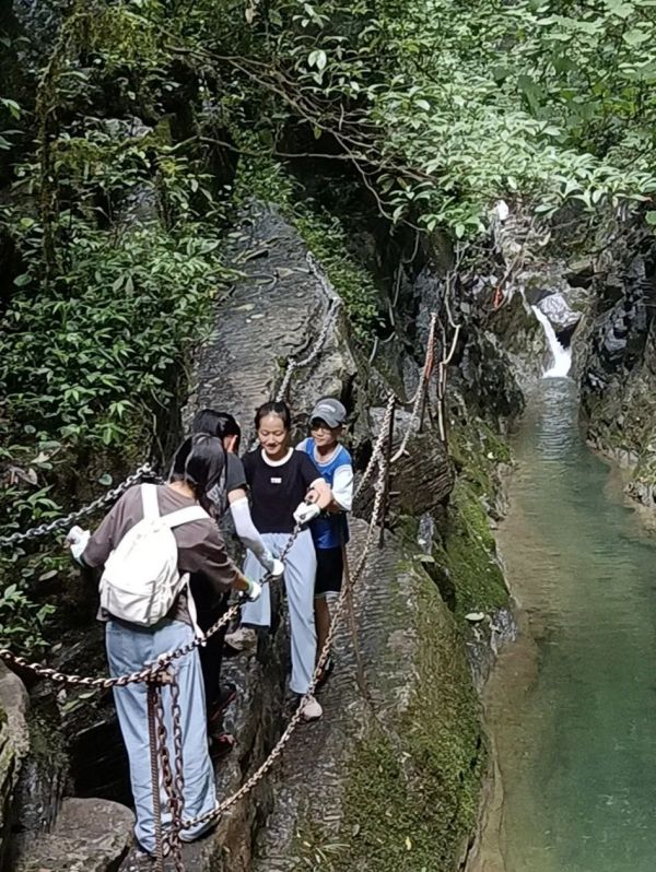 惊讶于满眼的绿色葱茏与惊险刺激的绝壁溪涧,幸福感与紧张感交替牵引着我们的心,艰辛而又幸福。