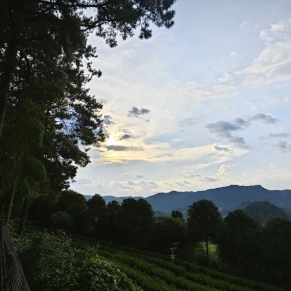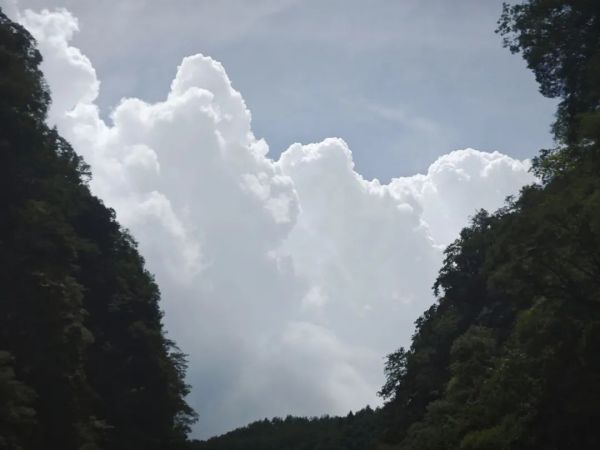大雨渐停,太阳急不可耐似地跑了出来,山间一时云雾遍布,竟比雨前的景色更美,云雾后的山岚若隐若现,“犹抱琵琶半遮面”的美感尽收眼底。