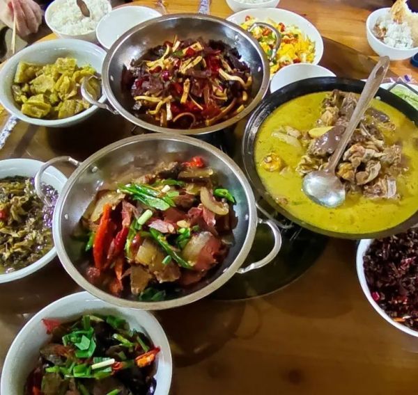 登高过后,我们来到早已预订好的农家小院用餐,百吃不厌的湘西腊肉、不忍下口但酥脆异常的特色炸荷花虫,以及各类特色小吃……
