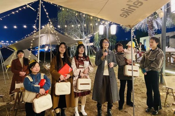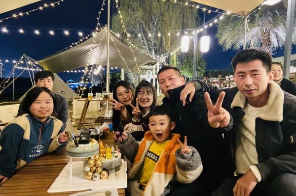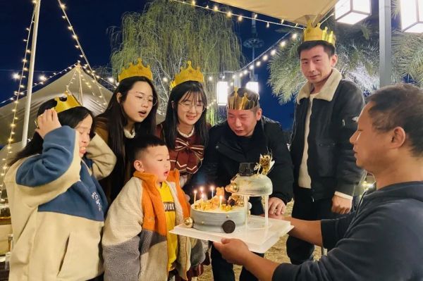星光帐篷下,生日祝贺仪式开始了。在营地教练的主持下,喻总代表公司致辞,向一起过生日的5位同事表达了美好的祝福,向他们发放了生日礼物,同时也祝公司女同事们节日快乐。5位年轻的“寿星”也在感言中表达了对公司的感激之情。